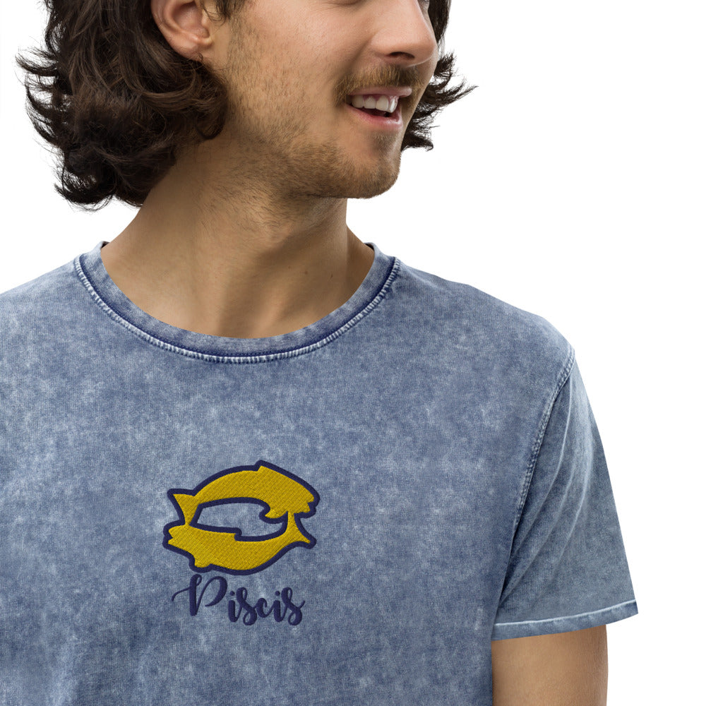 Pisces t-shirts for gift embroidery zodiac sign. Unisex denim t-shirt